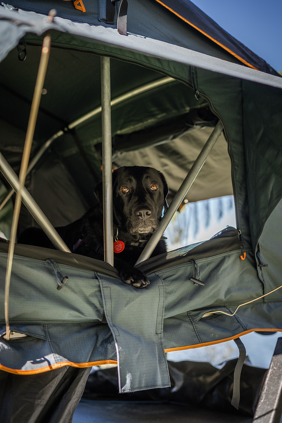 Our 'wooftop' tent model and resident labrador, Rhonda, has been with us since the conception of our touring range. From emotional support to product comfort testing, Rhonda has been one of our biggest supporters and is always keen to get involved in our shoots and off-road trips.