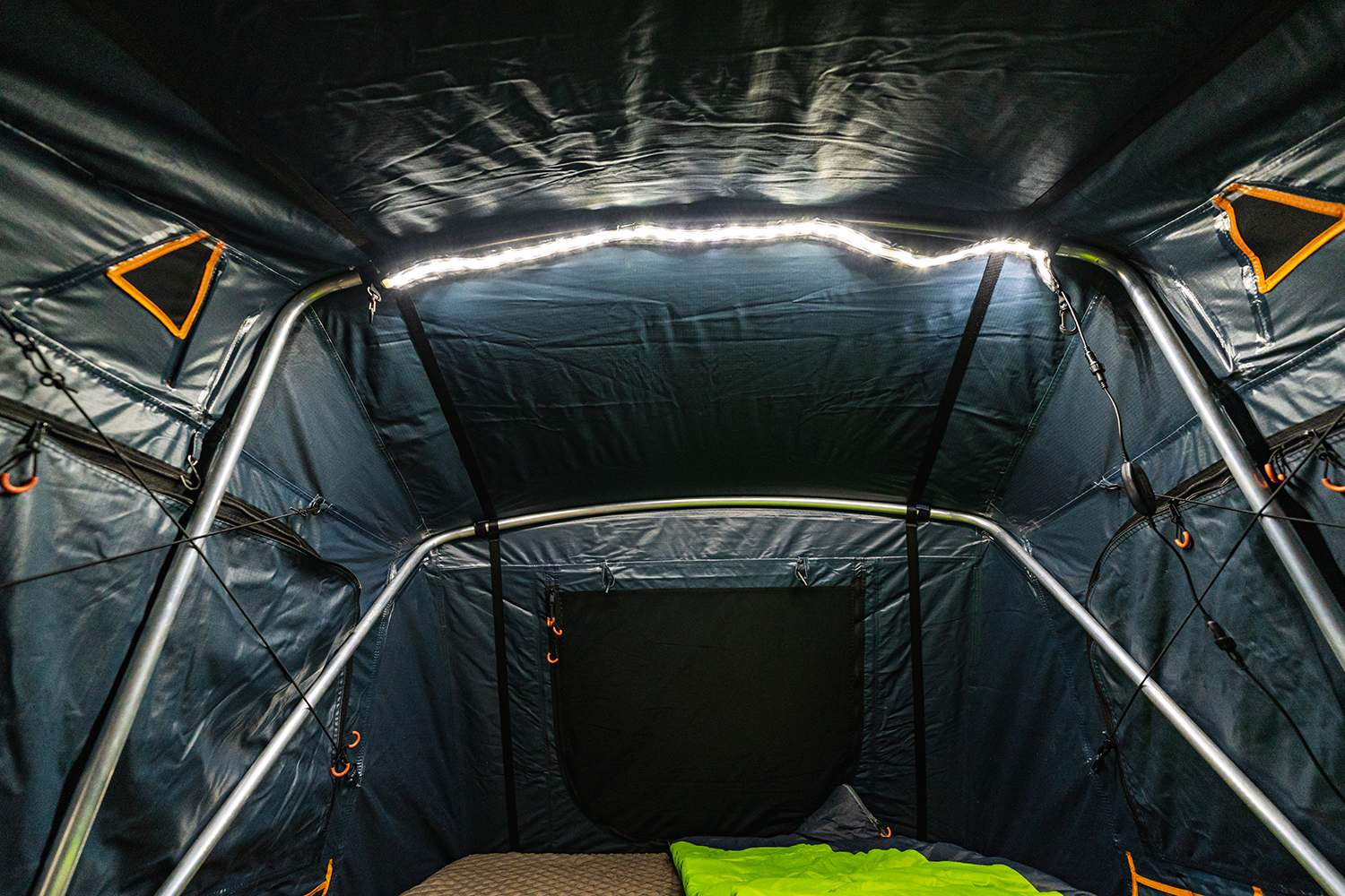 Our flexi LED light strips are perfect for camping outdoors and come with a 5m DC and USB cord. Tap the dimmer switch for up to 1400 lumens of light for your tent, awning, rooftop tent or family camping setup. The 1.3m long LED strip is fitted inside a fabric strap with hook and loop fixings for easy hanging to tent poles or awnings. The supply cords are 5m long and the LED strip is IP65 water-resistant. Includes carry bag.