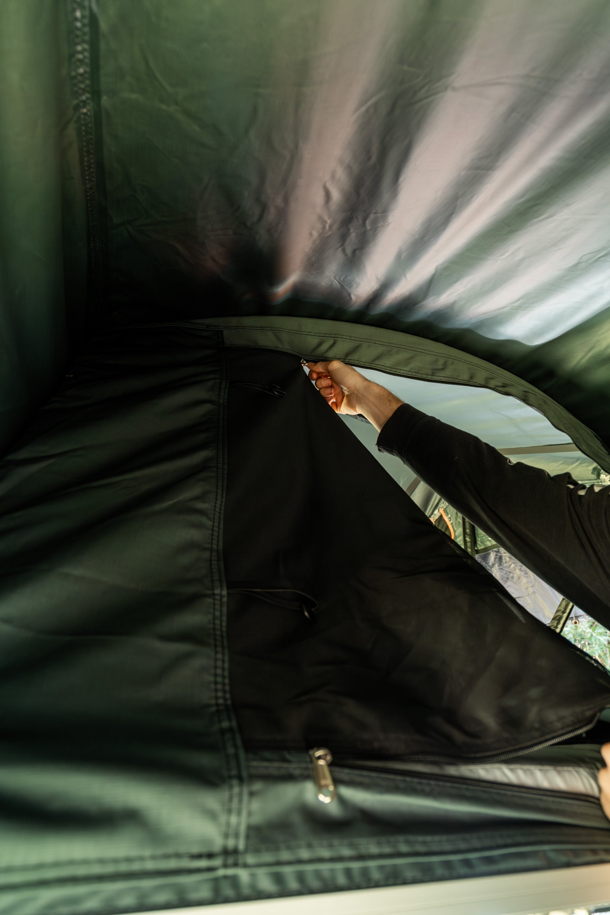 New curved window design better mitigates condensation by improving airflow, as well as keeping you protected from the elements. Curved windows can be pitched out or rolled up.