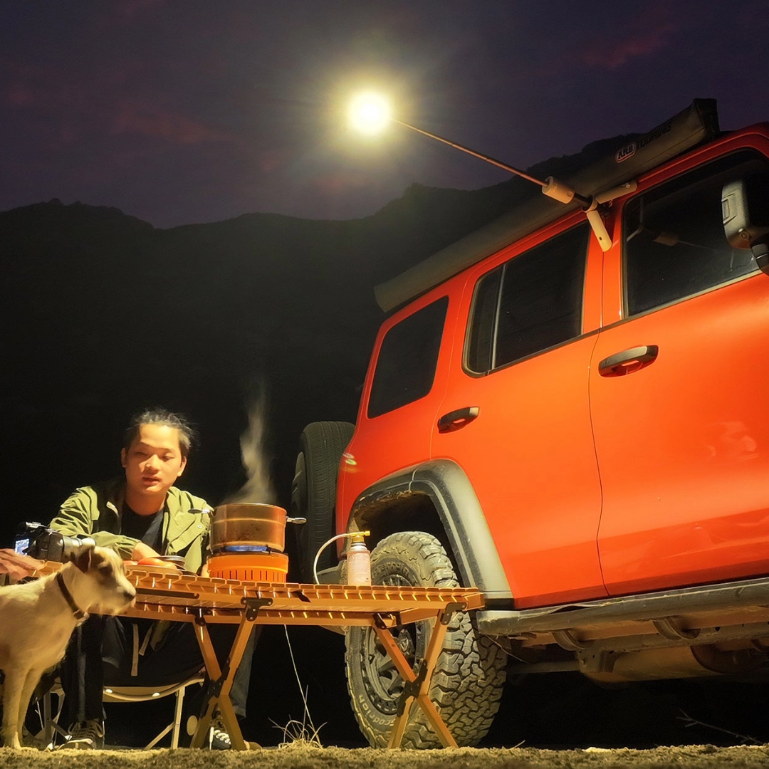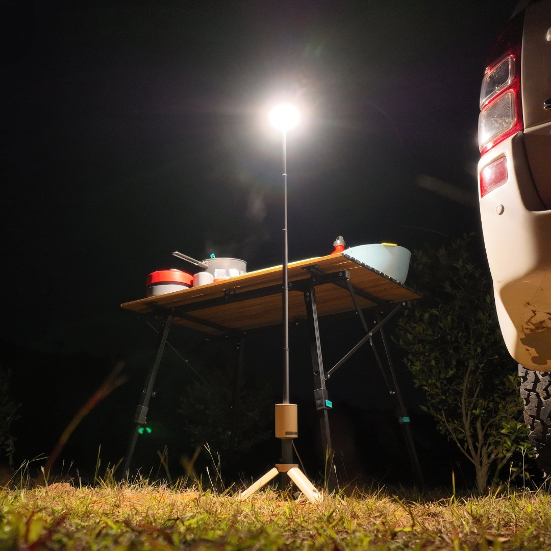 With a magnetic base, tripod, and 720° stereo lighting, Outask enhances your camping experience. Attach it anywhere, light up everywhere.